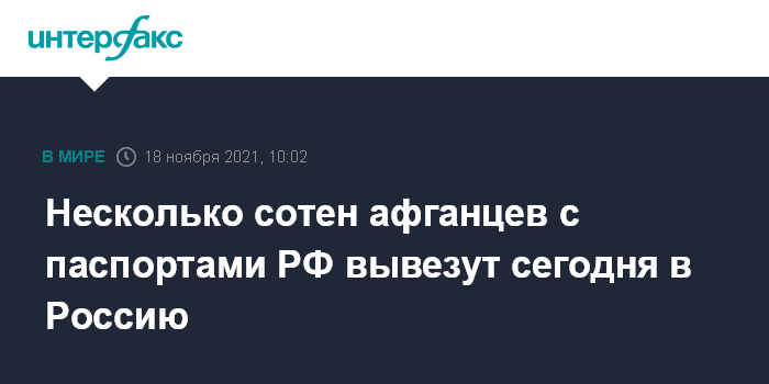 Несколько сотен афганцев с паспортами РФ вывезут сегодня в Россию
