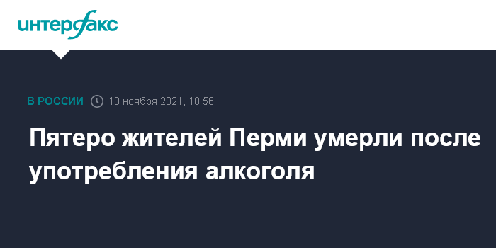 Москва. 18 ноября. INTERFAX.RU - Уголовное дело по факту смерти пяти человек после употребления алкоголя возбуждено в Перми, сообщается на сайте регионального управления СКР в четверг.