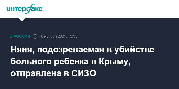 Няня, подозреваемая в убийстве больного ребенка в Крыму, отправлена в СИЗО