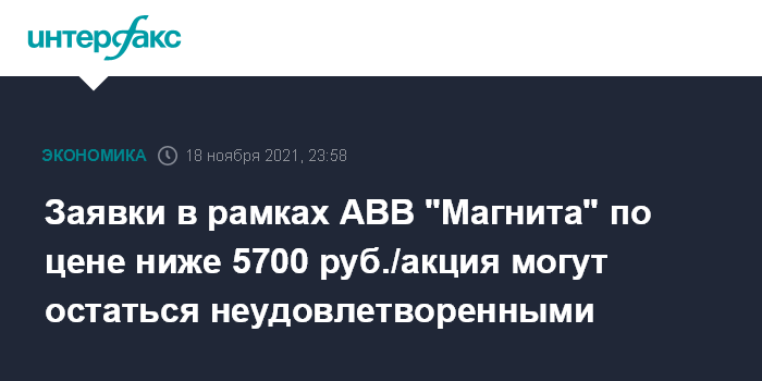 Заявки в рамках ABB "Магнита" по цене ниже 5700 руб./акция могут остаться неудовлетворенными