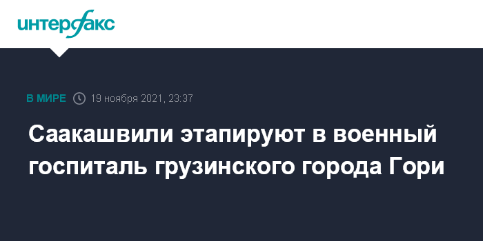 Москва. 19 ноября. INTERFAX.RU - Этапирование бывшего президента Грузии Михаила Саакашвили началось в эти минуты из тюремной больницы в военный госпиталь города Гори.