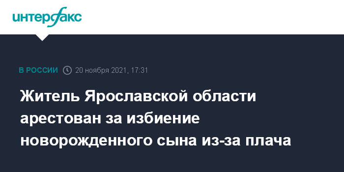 Москва. 20 ноября. INTERFAX.RU - Уголовное дело возбуждено в отношении 20-летнего жителя Ярославской области, который избил своего новорождённого ребёнка из-за плача.