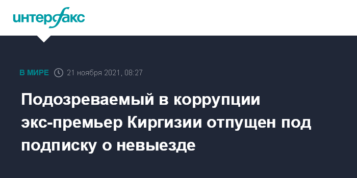 Подозреваемый в коррупции экс-премьер Киргизии отпущен под подписку о невыезде