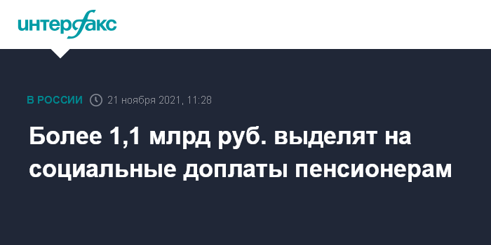 Москва. 21 ноября. INTERFAX.RU - Правительство России направит более 1,1 млрд рублей на региональные социальные доплаты неработающим пенсионерам.