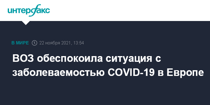Москва. 22 ноября. INTERFAX.RU - Специальный представитель Всемирной организации здравоохранения (ВОЗ) по борьбе с COVID-19 Дэвид Набарро выразил обеспокоенность в связи с ситуацией с заболеваемостью COVID-19 в Европе и призвал всех, кто может, вакцинироваться.