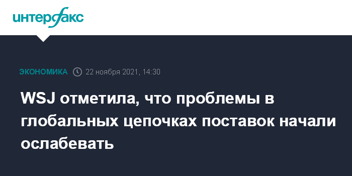 WSJ отметила, что проблемы в глобальных цепочках поставок начали ослабевать