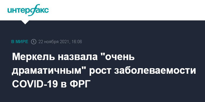 Москва. 22 ноября. INTERFAX.RU - Канцлер Германии Ангела Меркель считает "очень драматичным" рост распространения коронавируса в ФРГ, такое заявление она сделала в понедельник коллегам по партии Христианско-демократический союз (ХДС), сообщает агентство Bloomberg.