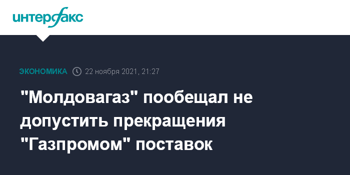 Москва. 22 ноября. INTERFAX.RU - Председатель правления АО "Молдовагаз" Вадим Чебан заявил, что компания выполнит свои обязательства и не допустит прекращения поставок газа.