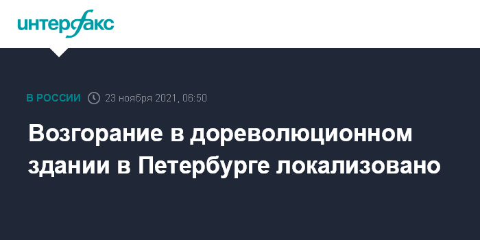 Возгорание в дореволюционном здании в Петербурге локализовано