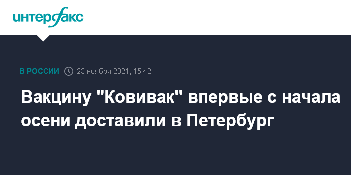 На прошлой неделе председатель комитета по здравоохранению Дмитрий Лисовец предположил, что "Ковивак" могут доставить в Петербург в начале декабря, когда предполагалось ту же вакцину доставить в Ленинградскую область.