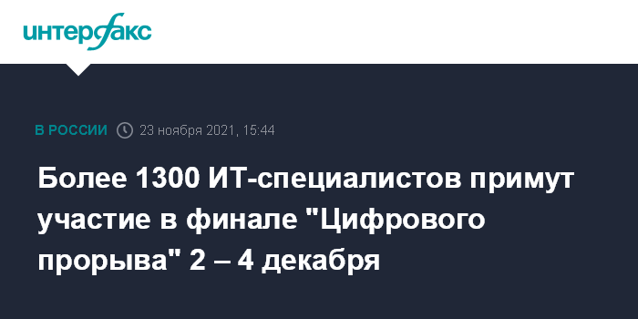 Более 1300 ИТ-специалистов примут участие в финале "Цифрового прорыва" 2 – 4 декабря