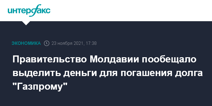 Накануне официальный представитель "Газпрома" Сергей Куприянов заявил, что концерн в соответствии с контрактом уведомил молдавскую сторону об остановке поставок газа Молдавии через 48 часов в случае, если не будет осуществлена плата по текущим поставкам. Он выразил разочарование невыполнением Молдавией контрактных обязательств, отметив, что очередной срок текущих платежей – 22 ноября.