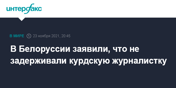 Москва. 23 ноября. INTERFAX.RU - В Государственном пограничном комитете Белоруссии опровергли информацию о задержании журналистки курдского телеканала NRT Чжан Али (Zhyan Ali) и изъятии у неё техники для работы.