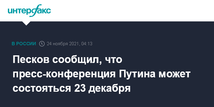Песков сообщил, что пресс-конференция Путина может состояться 23 декабря