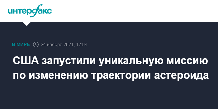 Москва. 24 ноября. INTERFAX.RU - Соединенные Штаты в среду запустили космический корабль DART для испытания технологии защиты Земли от столкновения с астероидами, сообщило НАСА.