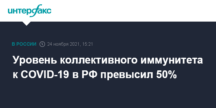 Уровень коллективного иммунитета к COVID-19 в РФ превысил 50%