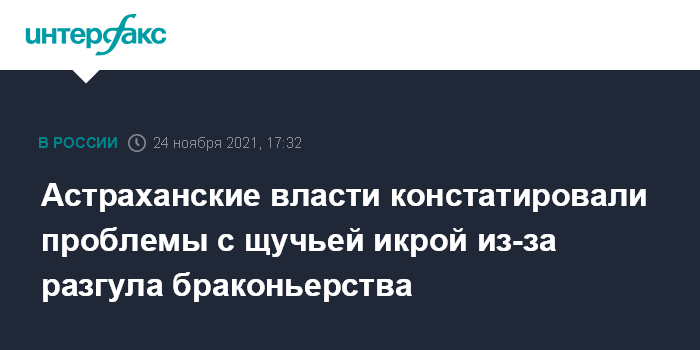 Москва. 24 ноября. INTERFAX.RU - Стоимость килограмма традиционного астраханского деликатеса - щучьей икры - возросла из-за истребления биозапасов этой рыбы теневым ловом, заявил министр сельского хозяйства и рыбной промышленности региона Руслан Пашаев.