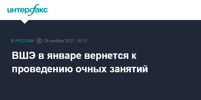 Москва. 24 ноября. INTERFAX.RU - Учебный процесс в Национальном исследовательском университете "Высшая школа экономики" (НИУ ВШЭ) после новогодних каникул вернется в традиционный формат, сообщается в официальном телеграм-канале вуза.