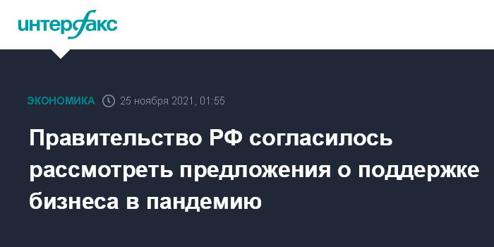Правительство РФ согласилось рассмотреть предложения о поддержке бизнеса в пандемию