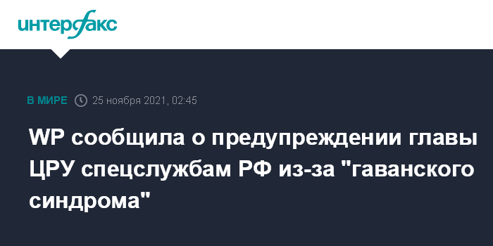 WP сообщила о предупреждении главы ЦРУ спецслужбам РФ из-за "гаванского синдрома"