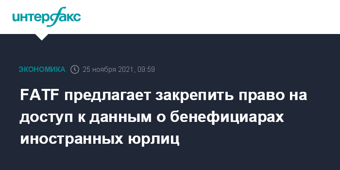 Москва. 25 ноября. INTERFAX.RU - FATF (Группа по разработке финансовых мер по борьбе с отмыванием денег - Financial Action Task Force) подготовила поправки к своим рекомендациям, которыми предлагается закрепить право компетентных органов страны иметь доступ к информации о бенефициарном владении не только юрлиц, созданных в этой стране, но и иностранных юрлиц, от которых исходят риски отмывания доходов, полученных преступным путем, а также риски финансирования терроризма и которые в значительной степени связаны с этой страной.