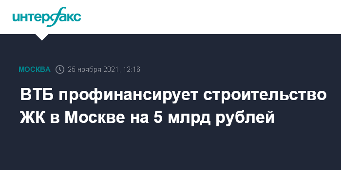 ВТБ профинансирует строительство ЖК в Москве на 5 млрд рублей
