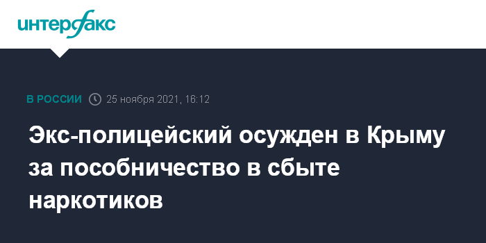 Москва. 25 ноября. INTERFAX.RU - Керченский городской суд в Крыму приговорил к 8,5 годам колонии строгого режима бывшего сотрудника подразделения по борьбе с незаконным оборотом наркотиков (ОБНОН) МВД РФ, признав его виновным в наркосбыте, сообщила в четверг пресс-служба суда.