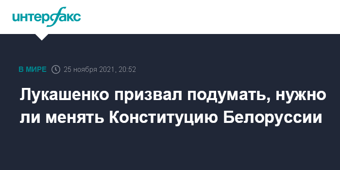 Москва. 25 ноября. INTERFAX.RU - Президент Белоруссии Александр Лукашенко призвал задуматься, нужны ли изменения Конституции страны и проведение соответствующего референдума.