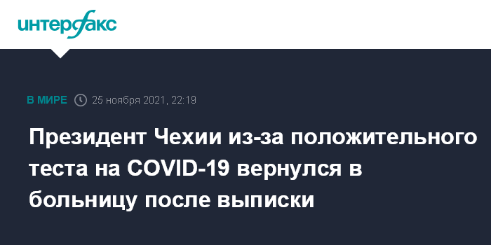 Президент Чехии из-за положительного теста на COVID-19 вернулся в больницу после выписки