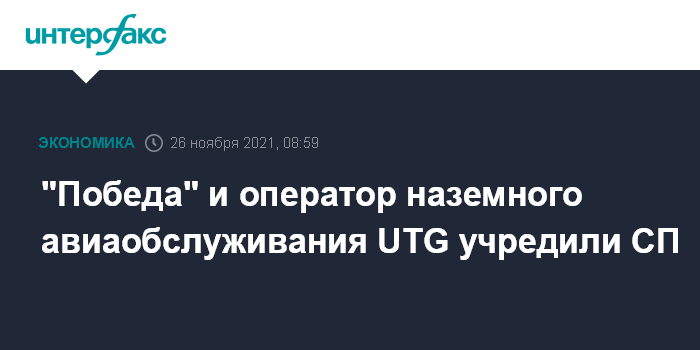 СП зарегистрировано 25 ноября в Москве с уставным капиталом 1 млн руб., в котором 74% - у UTG, 26% - у "Победы". Основной вид деятельности компании - "деятельность вспомогательная прочая, связанная с воздушным транспортом".