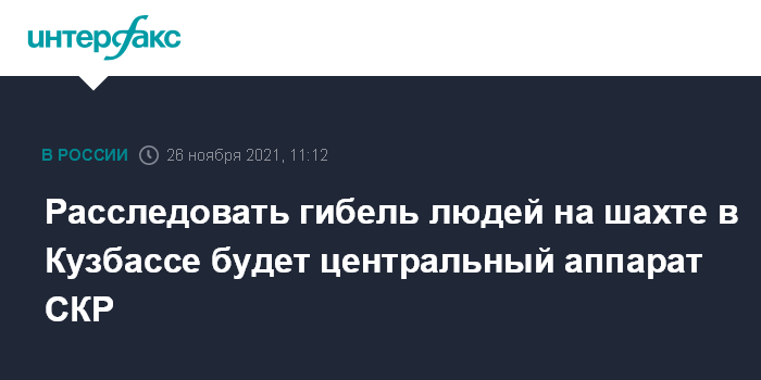Москва. 26 ноября. INTERFAX.RU - Решением главы Следственного комитета России Александра Бастрыкина уголовные дела о гибели десятков горняков на шахте "Листвяжная" в Кемеровской области будет расследовать центральный аппарат ведомства, сообщила официальный представитель СКР Светлана Петренко.