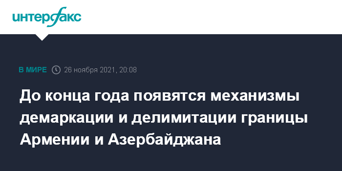 Москва. 26 ноября. INTERFAX.RU - Президент РФ Владимир Путин сообщил, что до конца года будут созданы механизмы демаркации и делимитации границ между Арменией и Азербайджаном.