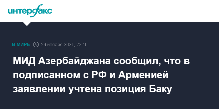 МИД Азербайджана сообщил, что в подписанном с РФ и Арменией заявлении учтена позиция Баку