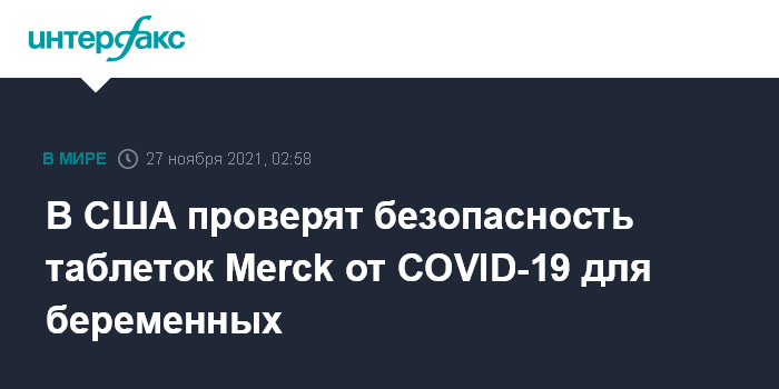 Москва. 27 ноября. INTERFAX.RU - Федеральные регулирующие органы здравоохранения США сообщили, что новые таблетки Molnupiravir от Merck эффективны против коронавируса, однако они будут запрашивать мнения сторонних экспертов о потенциальных рисках препарата для беременных. Об этом сообщает Associated Press.