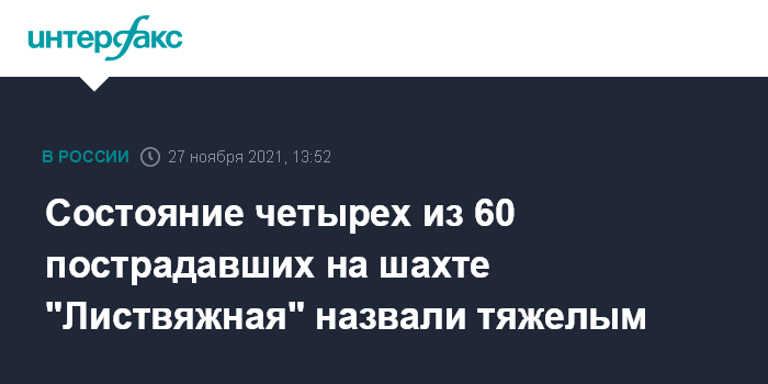 Состояние четырех из 60 пострадавших на шахте "Листвяжная" назвали тяжелым