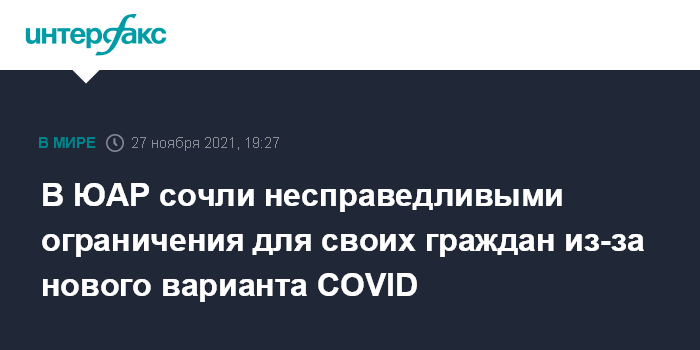 В ЮАР сочли несправедливыми ограничения для своих граждан из-за нового варианта COVID