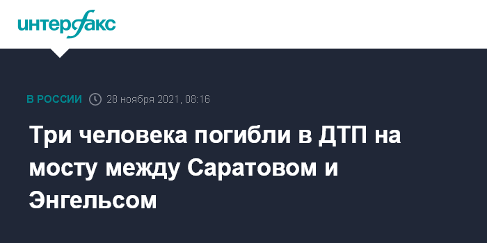Москва. 28 ноября. INTERFAX.RU - Дорожная авария в Саратовской области в ночь на воскресенье унесла жизнь троих человек, сообщает УГИБДД региона.