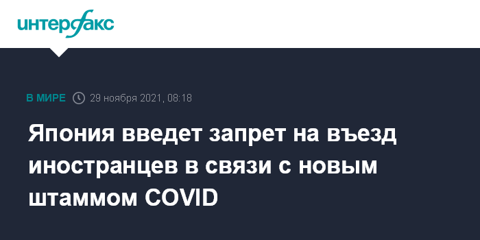 Москва. 29 ноября. INTERFAX.RU - Премьер-министр Японии Фумио Кисида объявил, что в целях предотвращения проникновения в страну южноафриканского штамма коронавируса "омикрон" со вторника запрещается въезд на японскую территорию всех иностранцев.