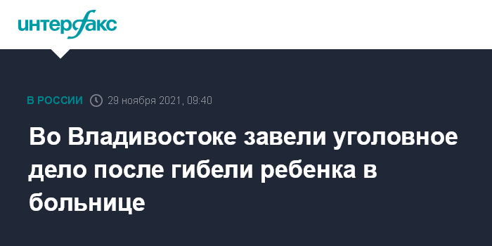 Во Владивостоке завели уголовное дело после гибели ребенка в больнице