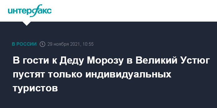 Москва. 29 ноября. INTERFAX.RU - Роспотребнадзор Вологодской области рекомендовал на новогодние праздники и Рождество, как и в прошлом году, запретить пускать в Вотчину Деда Мороза в Великом Устюге организованные группы детей из-за пандемии, сообщила пресс-служба правительства региона.
