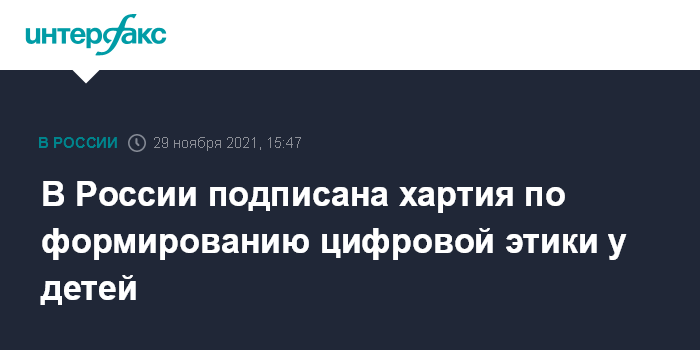 Москва. 29 ноября. INTERFAX.RU - Девять российских IT-компаний и медиахолдингов присоединились к хартии "Цифровая этика детства". Изложенные в хартии ценности и правила поведения позволят создать цифровую среду безопасную и благоприятную для развития и творческой самореализации детей, считают ее разработчики.