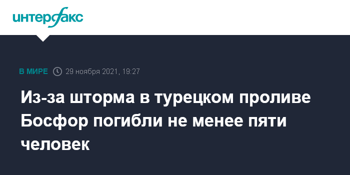 Из-за шторма в турецком проливе Босфор погибли не менее пяти человек