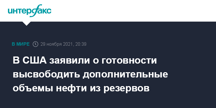 23 ноября президент США Джо Байден объявил о намерении страны продать 50 млн баррелей из стратегического нефтяного резерва (SPR), скоординировав этот шаг с Китаем, Японией, Индией, Южной Кореей и Великобританией.