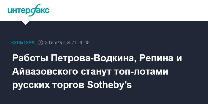 Работы Петрова-Водкина, Репина и Айвазовского станут топ-лотами русских торгов Sotheby's
