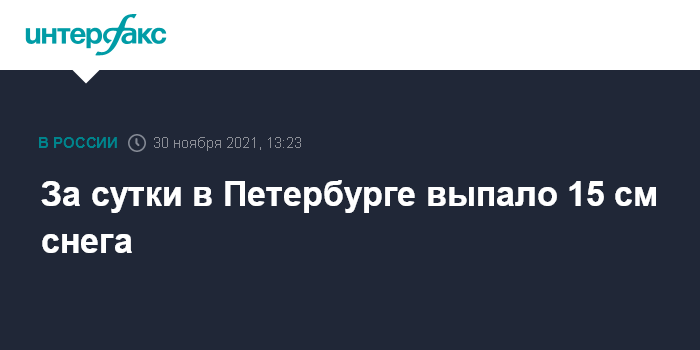 Москва. 30 ноября. INTERFAX.RU - Высота выпавшего за ночь снега в Петербурге составила 12 сантиметров, сообщает пресс-служба комитета по благоустройству во вторник.