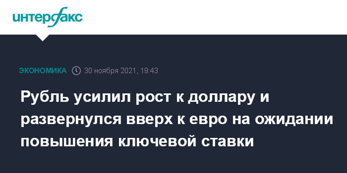 Как отмечают эксперты "Интерфакс-ЦЭА", рубль усилил рост к доллару и развернулся вверх к евро на вечерних торгах на ожиданиях дальнейшего повышения ключевой ставки ЦБ РФ на декабрьском заседании регулятора после соответствующих заявлений главы Банка России Эльвиры Набиуллиной.