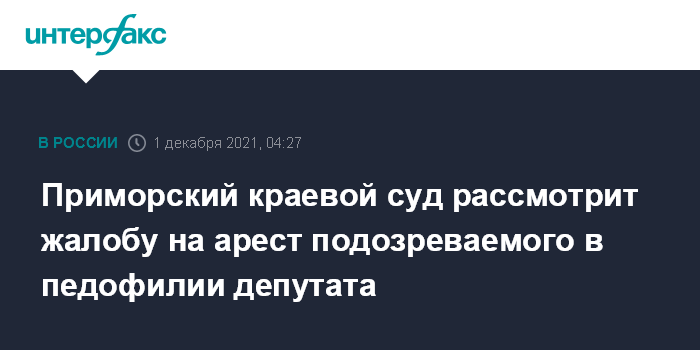 Приморский краевой суд рассмотрит жалобу на арест подозреваемого в педофилии депутата