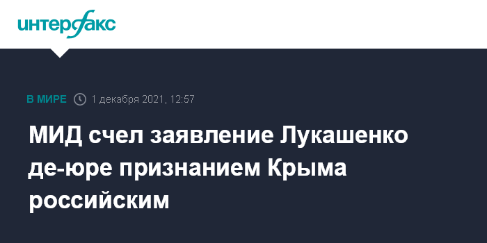 МИД счел заявление Лукашенко де-юре признанием Крыма российским