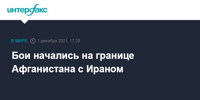 Москва. 1 декабря. INTERFAX.RU - Боестолкновения начались во второй половине среды между боевиками движения "Талибан" (запрещено в РФ) и иранскими пограничниками в районе Конг афганской провинции Нимроз, сообщает информационное агентство Aamaj News.