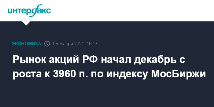 Рынок акций РФ начал декабрь с роста к 3960 п. по индексу МосБиржи
